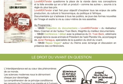 Lors de cette soirée, nous nous interrogerons sur le droit du Vivant, question phare en cette période électorale. Au programme : 18h00 : projection du film "LoveMEATender" 19h00 : conférence-débat en la présence du Dr. [...]